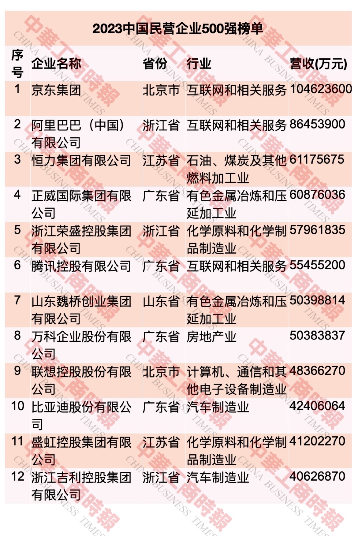 2023中国民营企业500强榜单