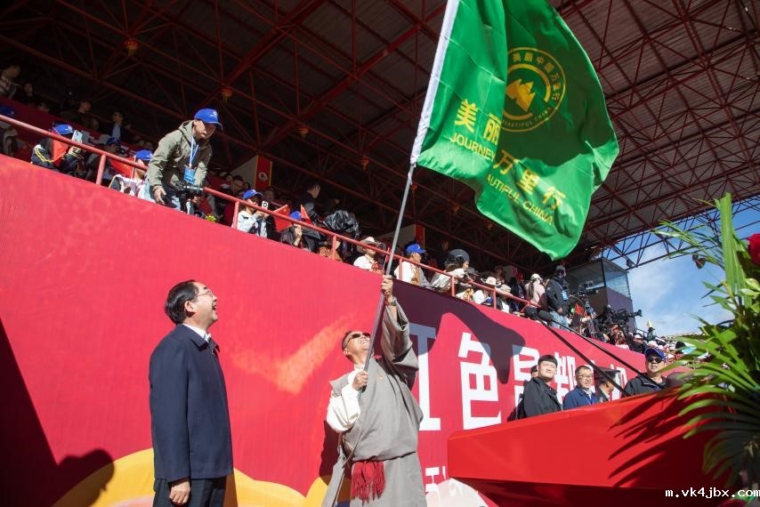 9月15日上午,中国风景名胜区协会会长、美丽中国万里行活动组委会主任张永利向昌都市委副书记、市长罗庆伍授予“美丽中国万里行”旗帜。活动由昌都市委副书记、常务副市长李树国主持。